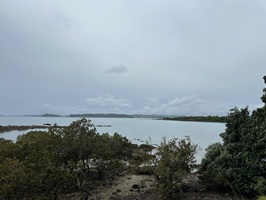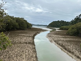 Nach der Brücke kam noch einmal ein schmaler Schotterweg, und schon war ich auf dem "Boardwalk" – einem Steg durch die Mangroven. Er wurde 2020/2021 komplett neu von Freiwilligen gebaut, nachdem ein Zyklon den alten zerstört hatte. Es ist wirklich toll, was Freiwillige alles bewirken können.