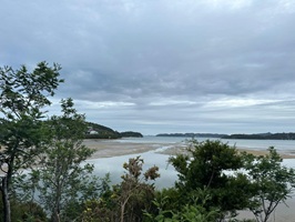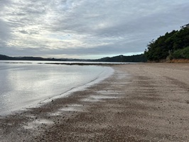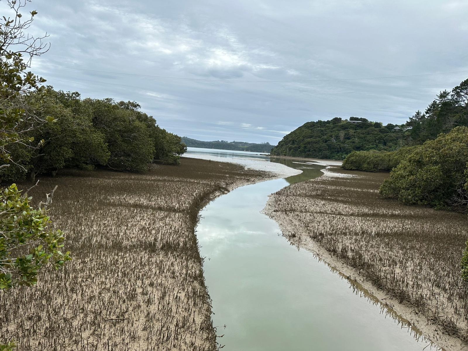 Was für ein toller Morgen das war! Wir hatten zu sechst im Aufenthaltsraum übernachtet, und der Sonnenaufgang war einer der schönsten, die ich bisher sah. Das Meer lag ganz ruhig da, kein Vergleich zur letzten, stürmischen Nacht. Gemütlich packte ich meine Sachen und machte mich auf den Weg. Ich überquerte die Orewa Brücke und lief am Fluss entlang. Weil Ebbe war, führte der Fluss wenig Wasser. Bald konnte ich von der Straße abbiegen und folgte einem Fahrrad- und Fußgängerweg. Es ist ein Genuss, wenn man weiß, dass man wenige Kilometer Vor sich hat und dadurch viel Zeit. Dann kann ich aufmerksamer auf alles sehen, was um mich herum passierte und es aufnehmen.