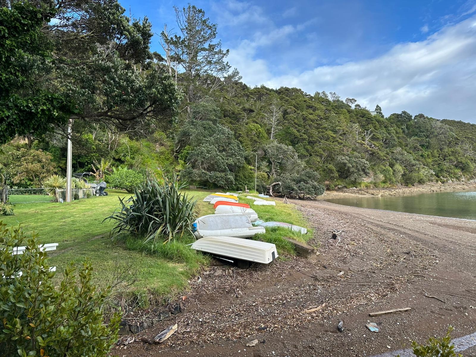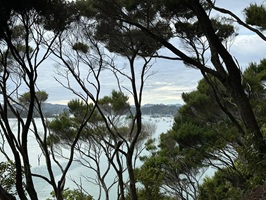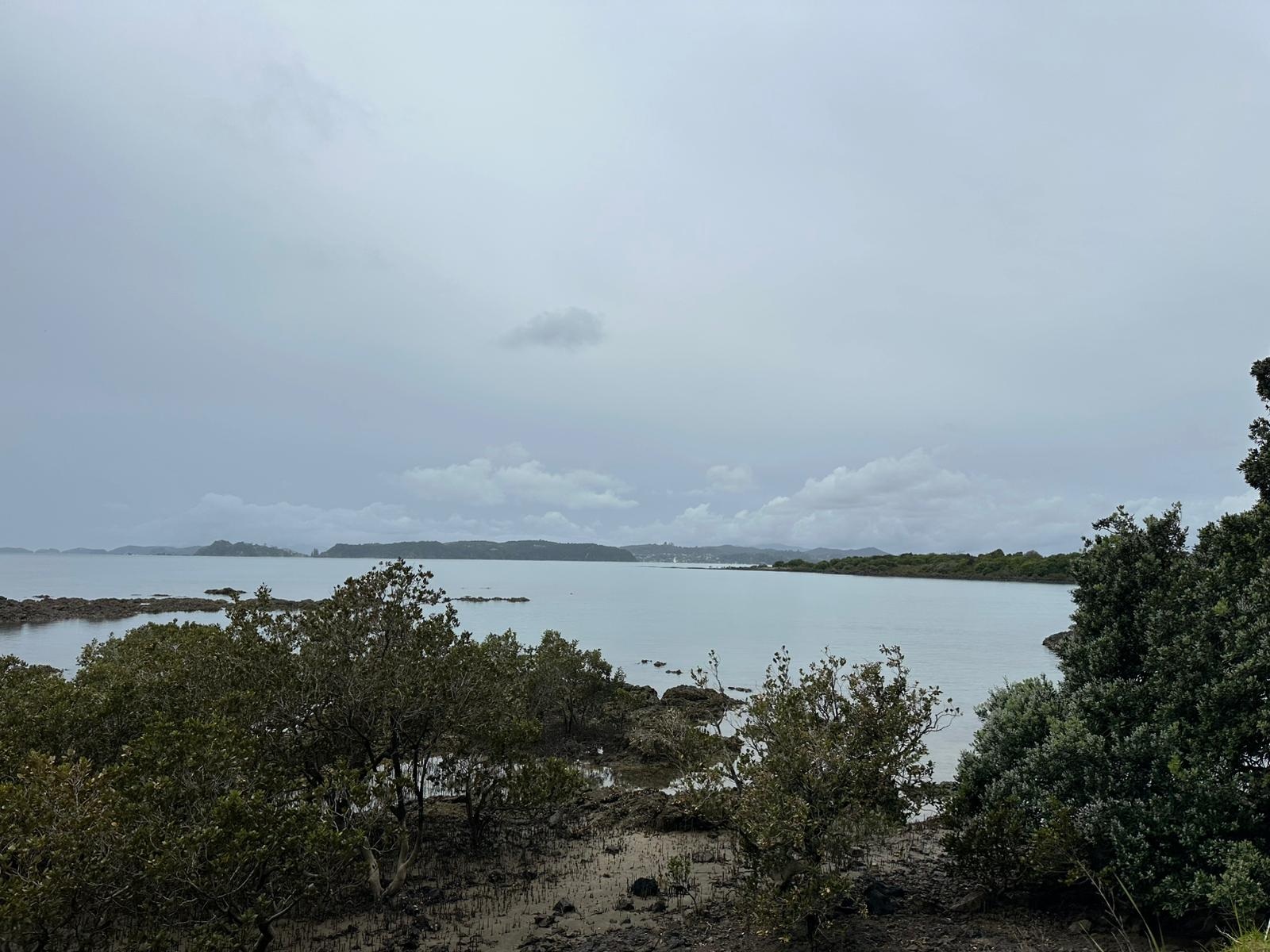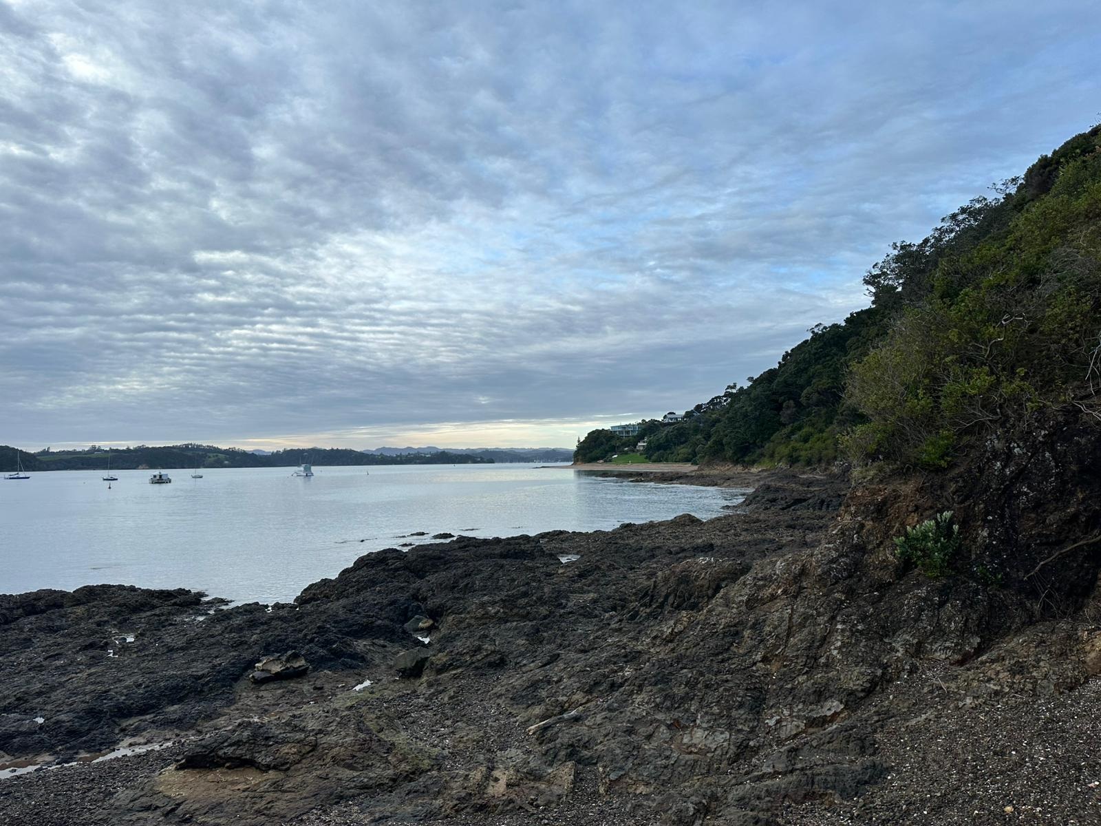 Leider war mit der Wildnis bald Schluss, und die Bebauung begann. Ich geriet mitten in eine Challenge für etwa hundert Schulkinder am Strand, eine Rallye, bei der ich unvermittelt zur Attraktion wurde. Danach ging es durch Wohngebiete. Klar, der Blick auf den Strand ist schöner, aber auch diese Abschnitte gehören dazu. Am Waiake Beach gab es das nächste süße Schulcamp mit Segelbooten. Das Wasser nach der nächsten Bucht war sehr unterschiedlich gefärbt, von ganz hell Türkis bis dunkel und auf der anderen Seite der Bucht leuchteten die Hügel grün.