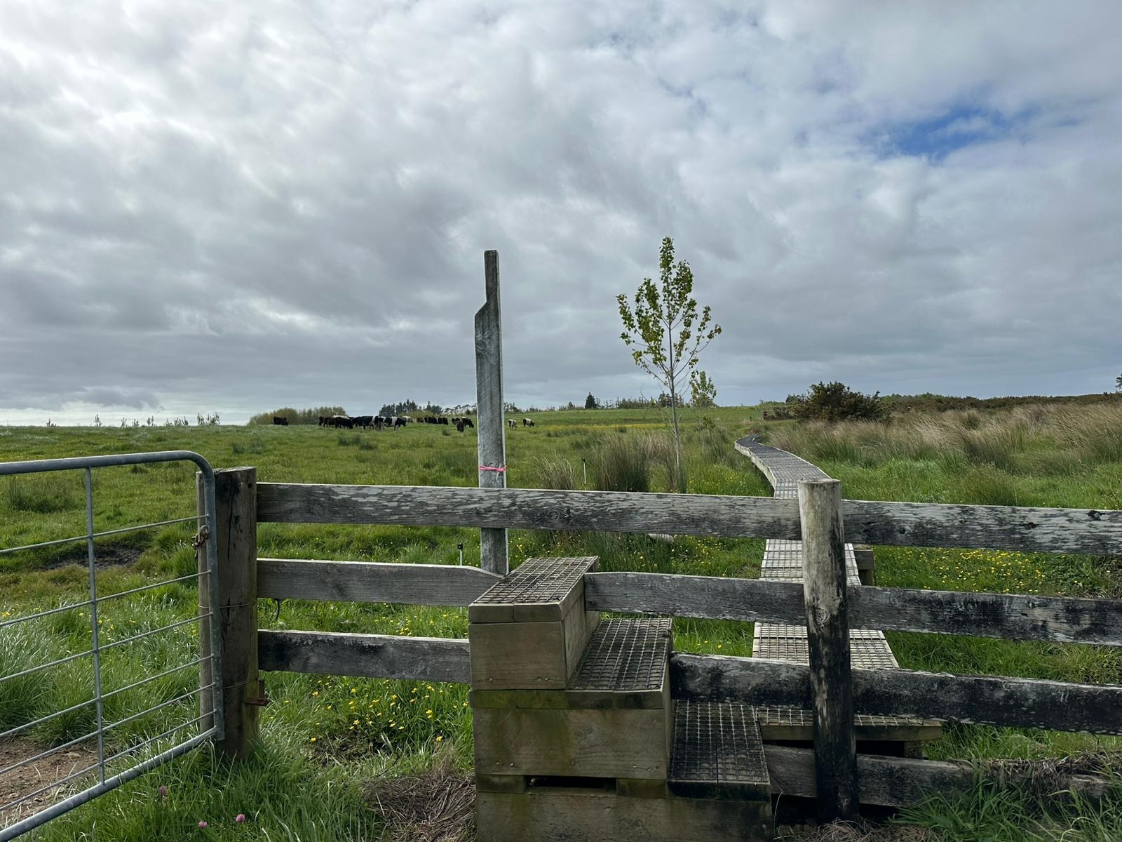 Wir wanderten weiter durch blühende Weiden voller Butterblumen und Kühen. Ein durchlaufenes Waldstück wirkte regelrecht "verwunschen" – kein Wunder, dass Herr der Ringe hier in Neuseeland gedreht wurde. Auf der Route gab es auch unter Wasser stehende Wiesenstücke, über die Stege führten. Unglücklicherweise blieb mein Stock stecken, und ich fiel vom Steg ins hohe, weiche Gras – und stand bis über die Knöchel im Wasser. Das hieß dann für mich, mit ziemlich nassen Füße und Wasser, das vorne aus den Löchern meiner Schuhe lief, weiter zu gehen. Selber schuld!