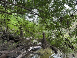 Nachdem wir unsere Rettungswesten angelegt und die ersten Probierrunden auf dem Wasser gedreht hatten, schickte uns Jonathan vom Kanuverleih schließlich auf den Fluss. Da der Wasserstand recht niedrig war, hieß es aufgepasst und sorgfältig navigieren, um Hindernissen wie Felsen und umgestürzten Bäumen auszuweichen.