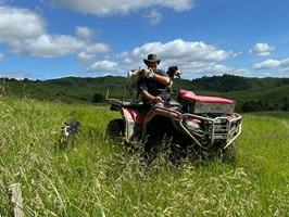 Genau so liebe ich es: Nur die Natur, die Tiere und ich. Gerade trieb ein Farmer mit seinen Hunden seine Schafe von einer Weide auf die andere. Dieses Blöken, das Zwitschern der Vögel und der Wind – herrlich. Kurz darauf begegnete ich dem Farmer, der gemütlich auf seinem Quad fuhr. Zwei seiner vier Hunde durften mitfahren, sie hatten ja auch fleißig gearbeitet und es war warm.