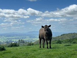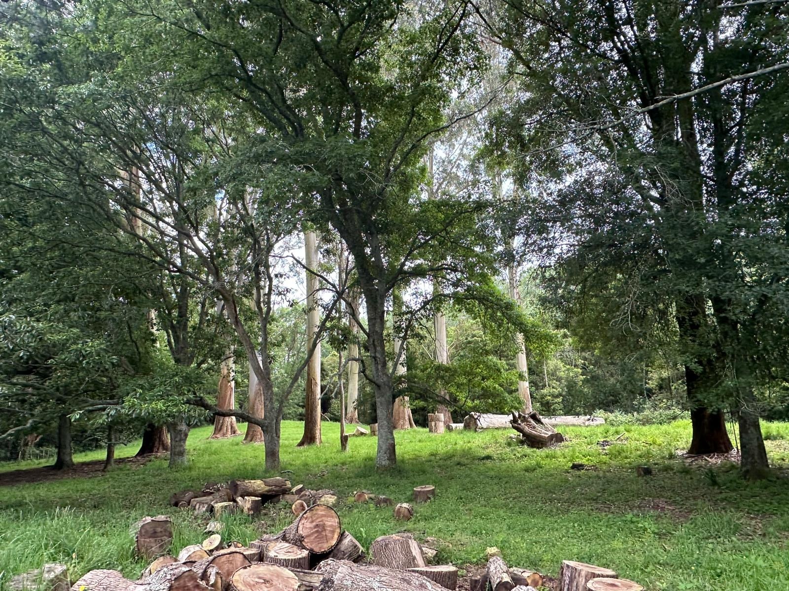 Hinter jedem Hügel wartete ein neuer, wunderbarer Ausblick. Die Weiden ließ ich hinter mir und erreichte ein Wäldchen. Der Wald war nicht so dicht, dass keine Sonne rein schien. Immer wieder kamen sonnige Abschnitte und sonnige Plätzchen luden zum Pause machen ein. Aber eine Pause brauche ich heute nicht mehr, denn die Farm ist nicht mehr weit. Ich freue mich auf Stews Farm, auf die sieben Kühe, vier Bullen, drei Schafe und die Hühner – und vor allem auf den angedeuteten Kaffee und die Eier zum Frühstück!