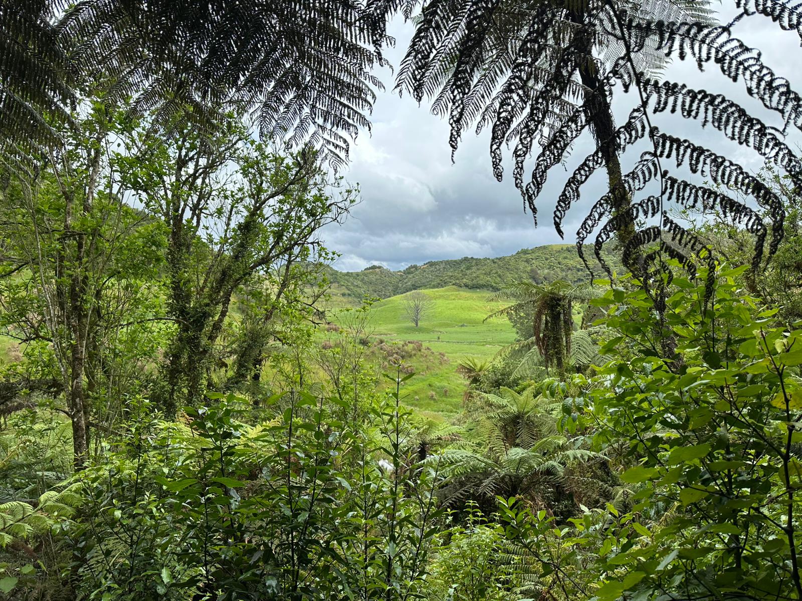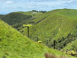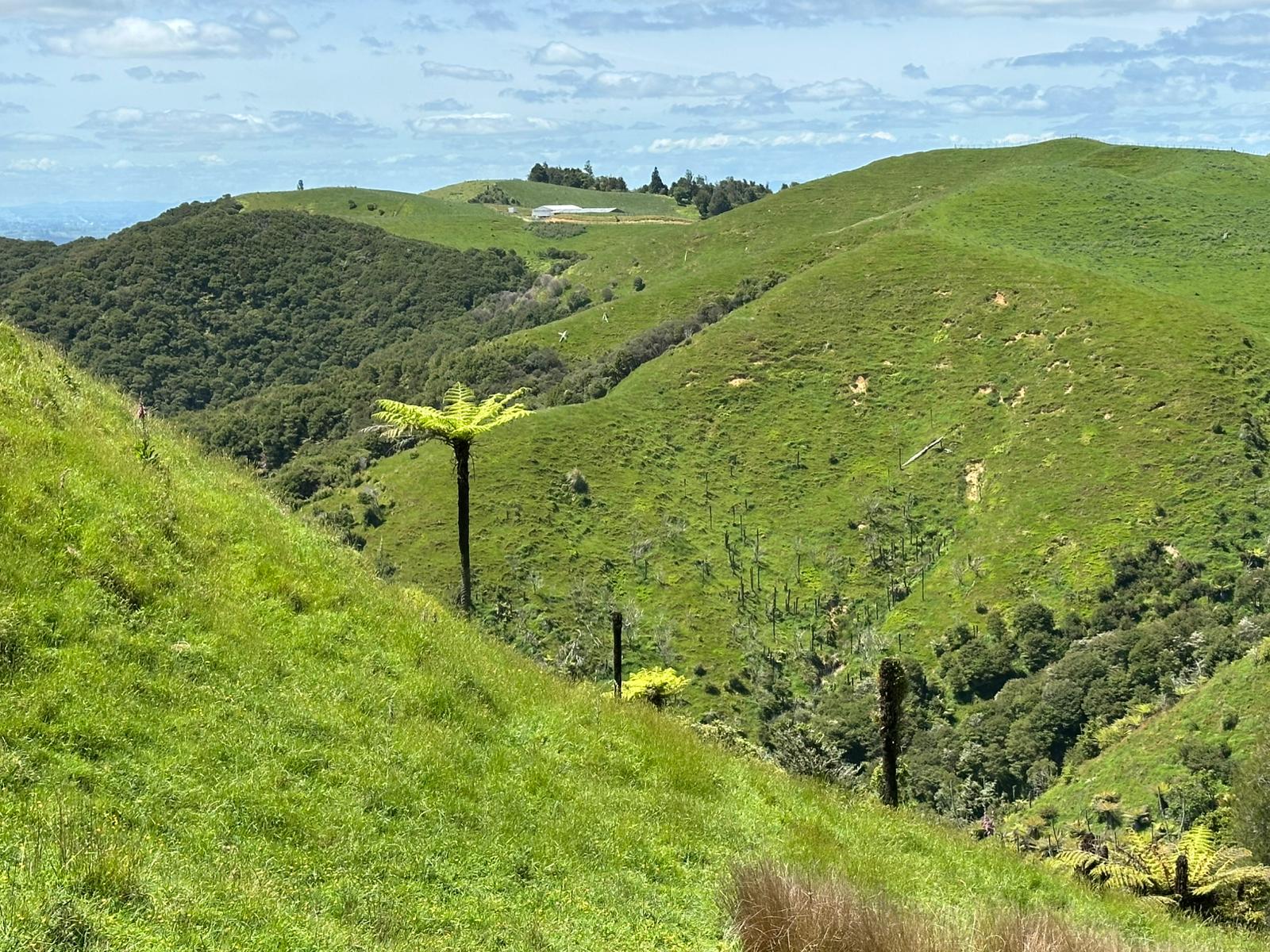 Wieder einmal befand ich mich mitten in dieser hügeligen, grünen, atemberaubenden Landschaft. Wieder einmal genoss ich einen Wahnsinnsausblick auf die Hügel mit den charakteristischen Baumfarnen im Vordergrund. Am liebsten wäre ich einfach stehen geblieben.