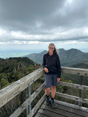 Draußen vor der Hütte saß ich dann auf der Bank und genoß die tolle Aussicht. Wir waren so früh oben auf dem Mount Pirongia (959 Meter) und hatten noch genug Zeit für Mittagessen, Abendessen.