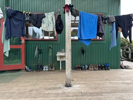 Nach einem gemütlichen Frühstück trödelte ich etwas herum, während alles nach dem Starkregen der Nacht und des Morgens trocknete. Mein Rucksack fühlte sich herrlich leicht an – kaum noch Vorräte und ein trockenes Zelt sind ein Traum! Ich wartete gespannt darauf, zur Glühwürmchenhöhle aufbrechen zu können.