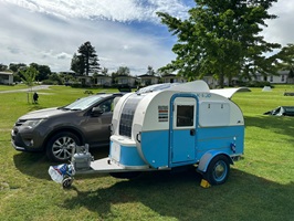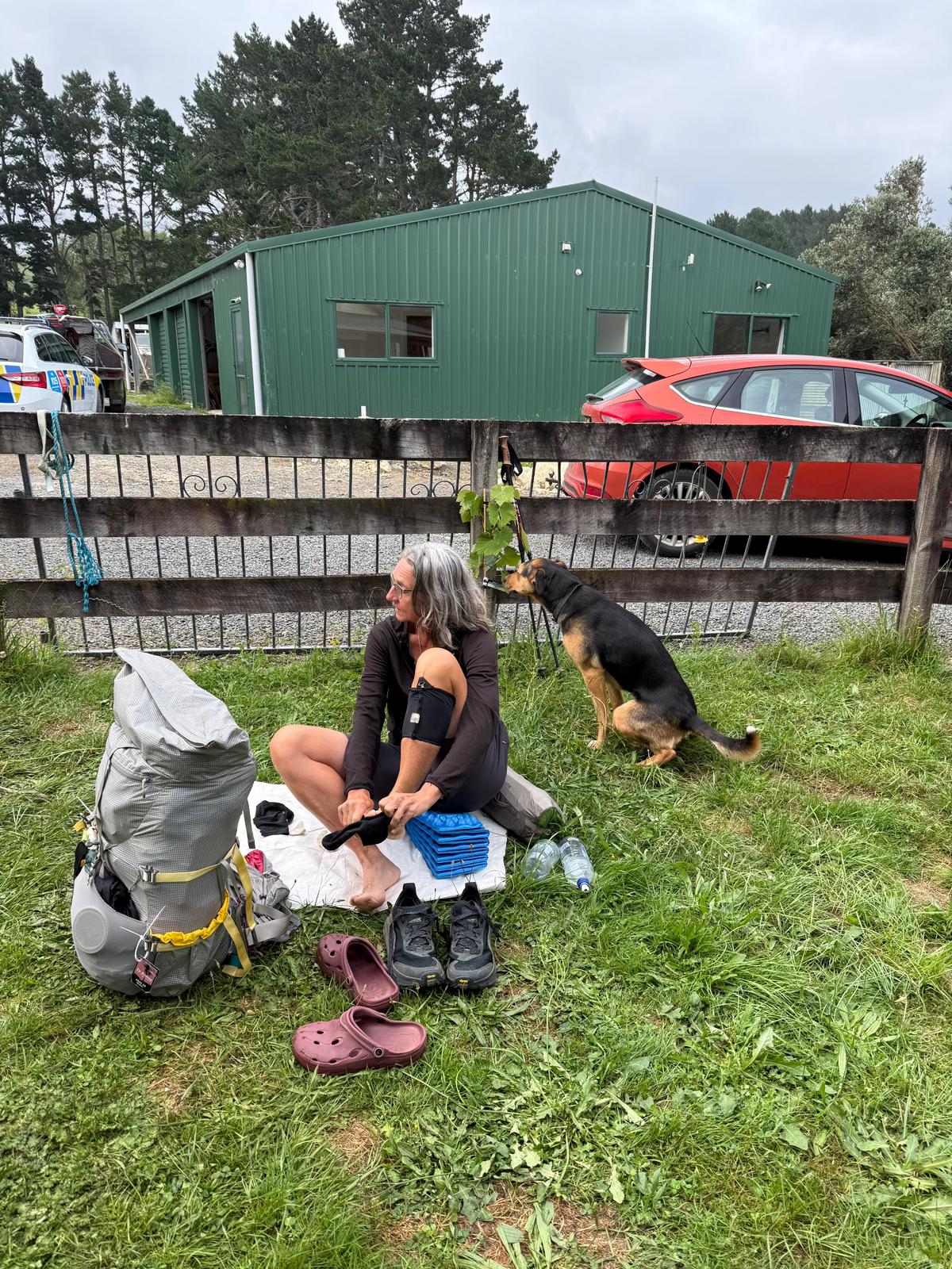 Auf dem Gelände traf ich eine Neuseeländerin, die mit ihrem winzigen Wohnwagen reist, während sie dauerhaft in einem etwas größeren lebt. Mit fast 68 Jahren schien sie ihr Leben in vollen Zügen zu genießen. Es war sehr entspannend, einfach nur abzuhängen und auf den Startschuss für die Tour zu warten.