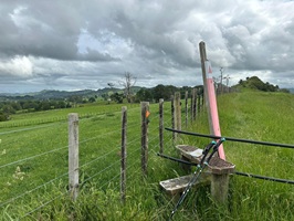 Unterwegs traf ich Tino am Straßenrand. Seine Freundin Regina, der es noch nicht gut ging, wollte per Anhalter weiter. Schließlich wurde sie aber gleich von Steffi und Stew, dem Farmer, bei dem wir heute übernachten, mitgenommen. Mein Zelt haben sie auch gleich mit eingepackt, damit es richtig trocknen kann. Ich merkte sofort, wie wohltuend es ist, wenn das Gewicht des Zeltes in meinem Rucksack fehlt.