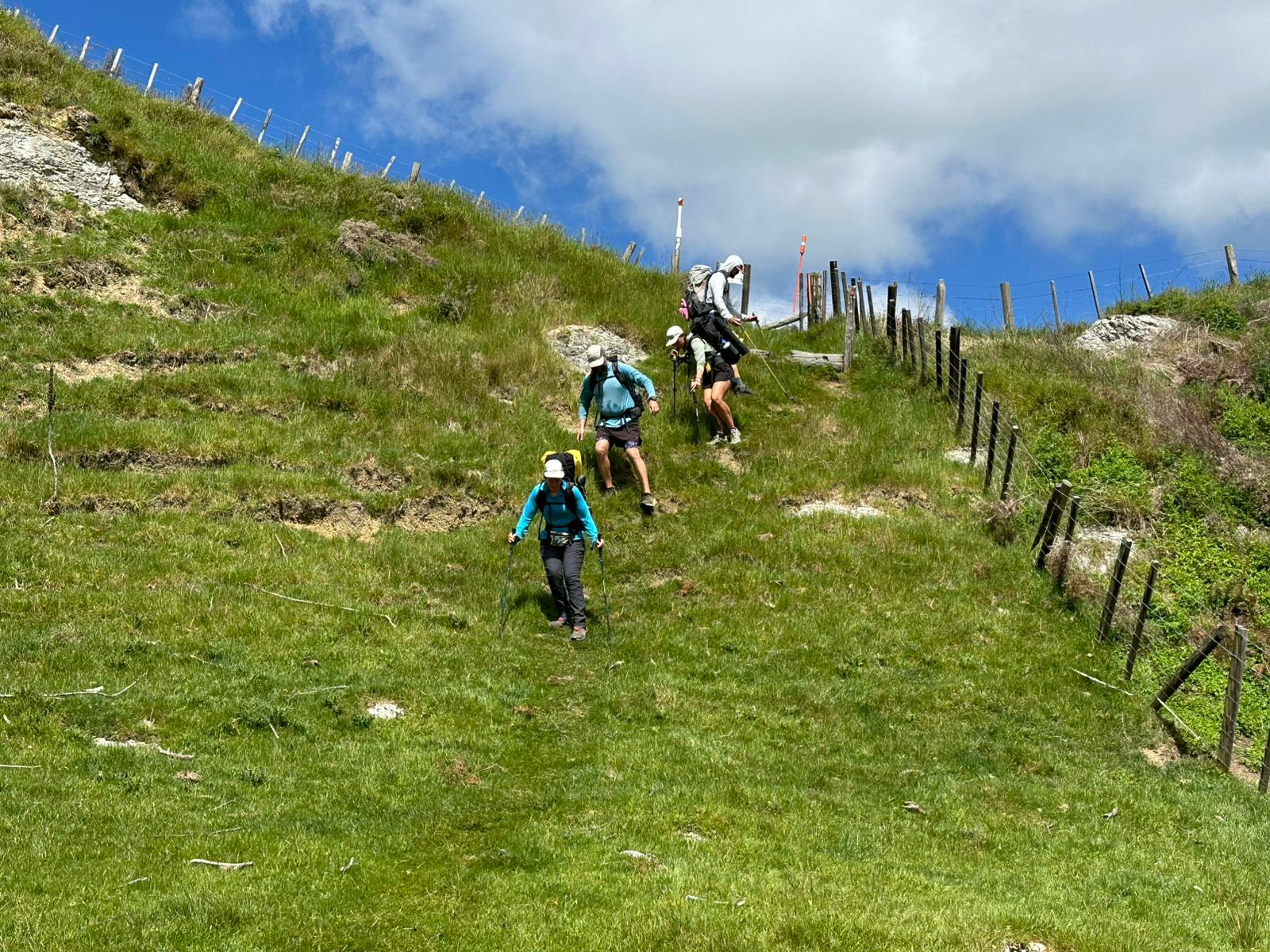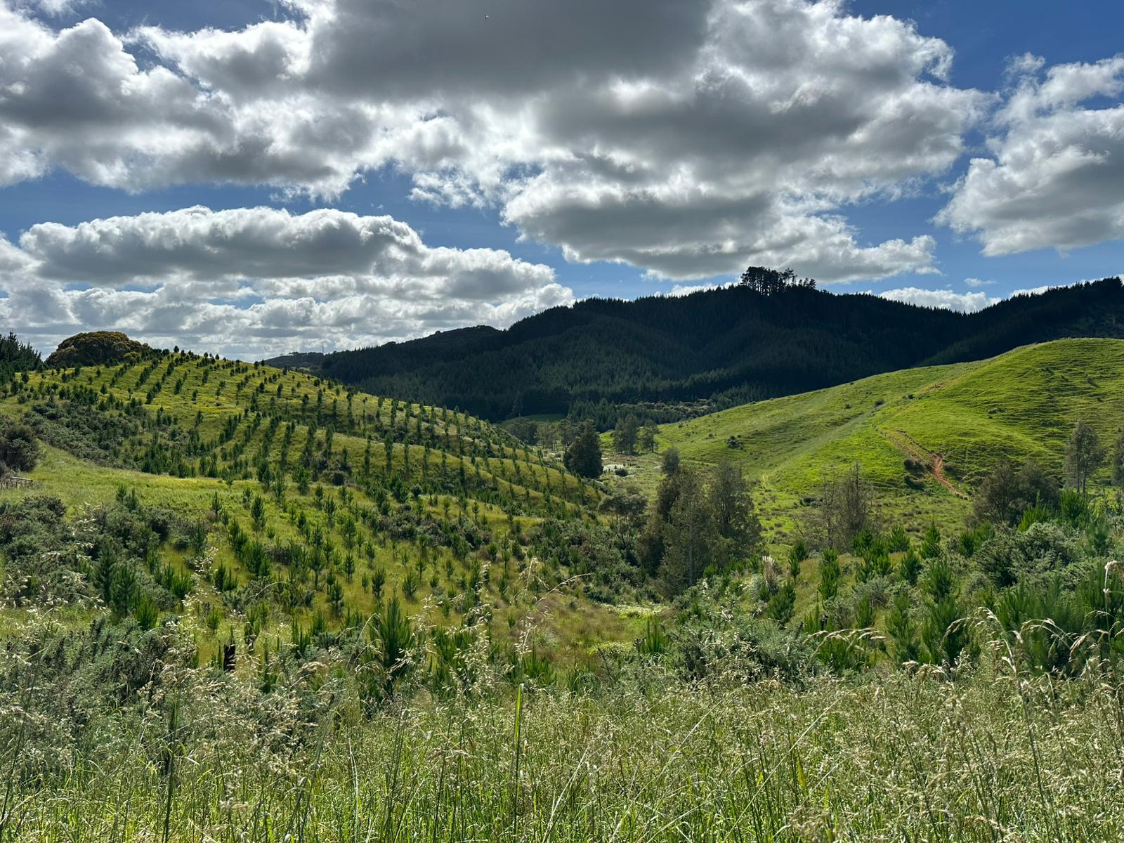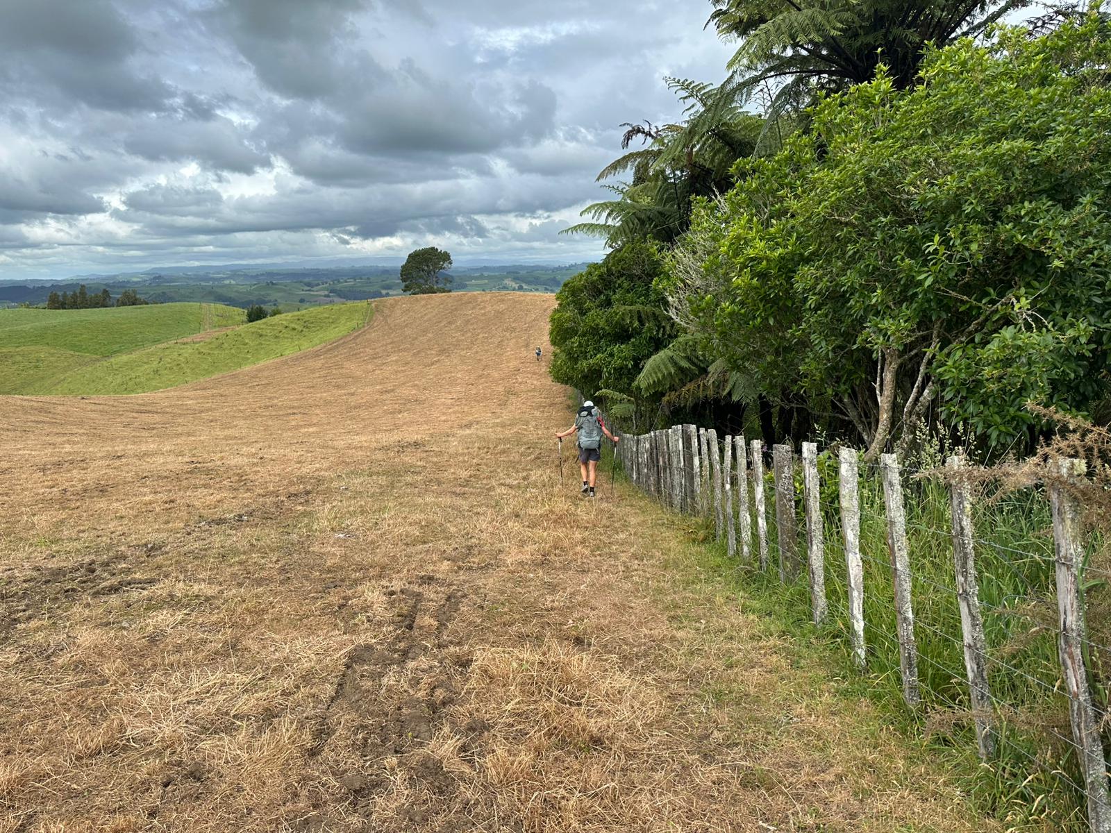 Der erste Anstieg war unmenschlich; ich fragte mich, wo überhaupt der Weg sein sollte, während wir uns den Hang hochkämpften. Es folgten sehr rutschige und matschige Passagen, aber bis auf ein paar Ausrutscher kamen wir gut oben und unten an. Nachdem wir das Stück durch den Wald hinter uns gebracht hatten, ging es über eine Wiese weiter. Wir beschlossen, dass wir, sobald wir einen Abzweig erreichen, auf diese abbiegen und zum Highway in Richtung Te Kuiti laufen, da wir sonst nicht im Hellen angekommen wären.