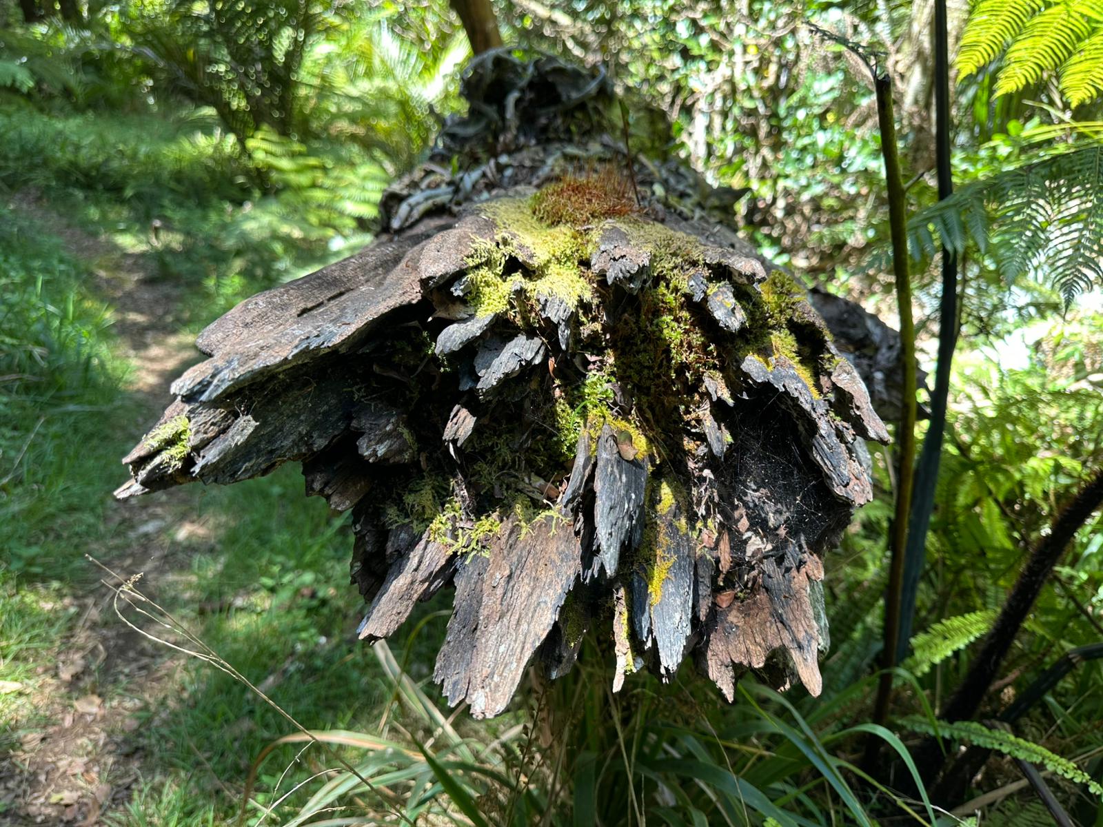 Schon bald kamen die Passagen, die wir so „lieben“: Es wurde matschig. Überall Wurzeln, kleine Bäche, die wir über dicke Steinbrocken überqueren mussten. Als ich an einem Baum mit Pilzen vorbeikam, die wie eine Treppe angeordnet waren, musste ich unweigerlich wieder an Steve denken. „Stairway to Heaven“.