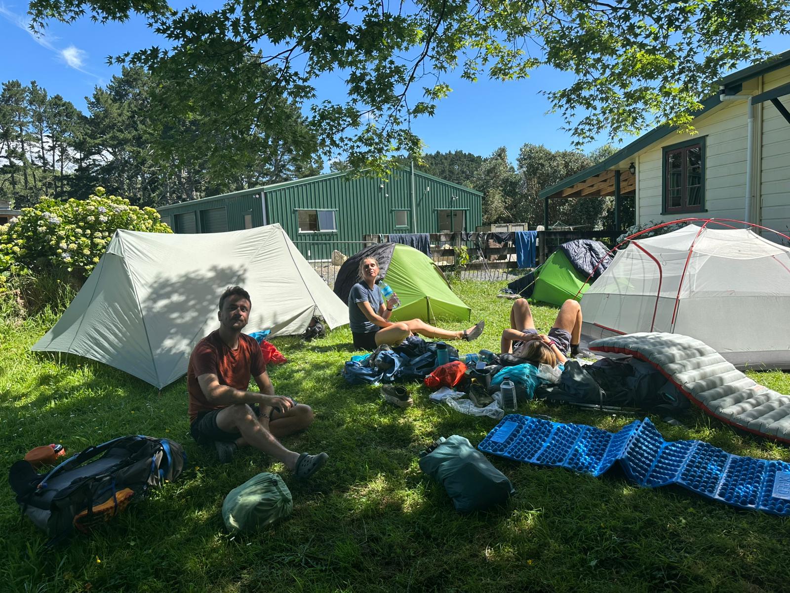 Der Trailangel, bei dem wir untergekommen sind, ist supernett, ihr Mann auch. Es ist allerdings richtig voll mit einigen Zelten und vielen Leuten, die drinnen schlafen.