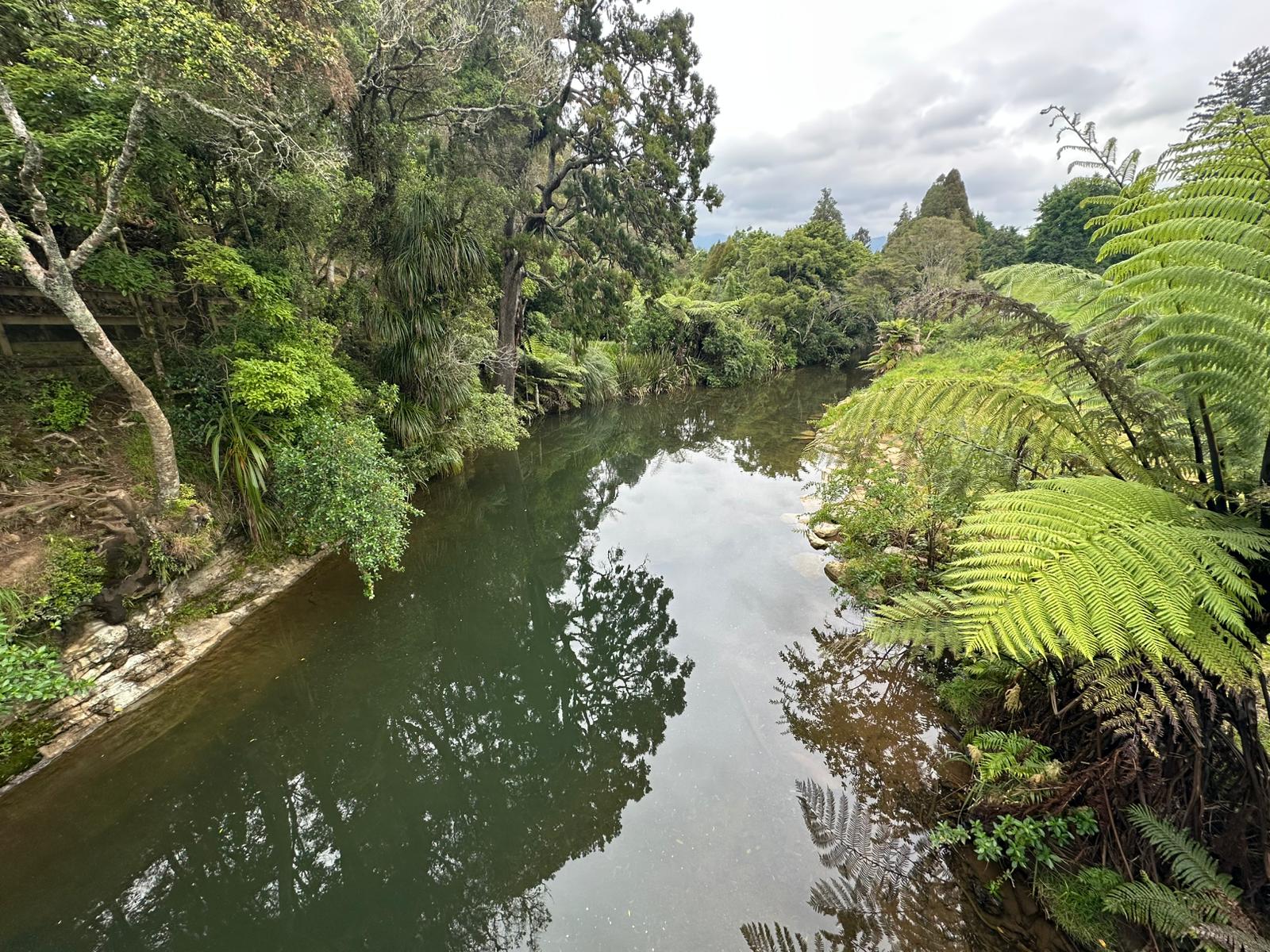 Der Abstieg war lang (das Wanderschild sagt 4-6 Stunden), aber ich bin ohne Ausrutscher und mit erstaunlich schmerzfreien Knien unten angekommen. An sich sollte morgen Nachmittag die Tour durch die Waitomo Cave folgen, aber das wird mir zu knapp. Darum mache ich einen Zeroday hier an diesem schönen Ort und kann dann entspannt übermorgen die berühmten Waitomo Höhlen besuchen.