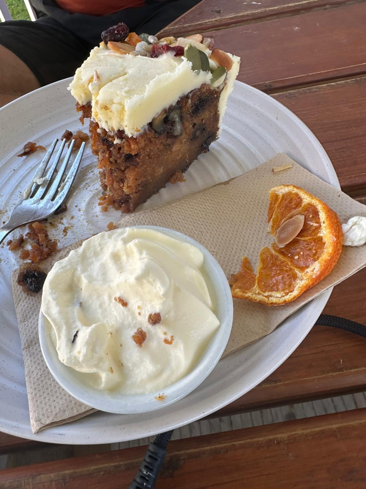 Heute Morgen wachte ich in einem richtig vollen Camp mit vielen bekannten und neuen Gesichtern auf. Es ist wirklich sehr nett, dass die Besitzerin uns einfach umsonst auf ihrem Gelände zelten ließ! Schon um 7:00 Uhr mussten alle ihre Zelte abgebaut haben, damit es zum Frühstückbetrieb des Cafés wieder ordentlich aussah. Aber zum Trocknen durften die Zelte noch hängen.