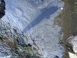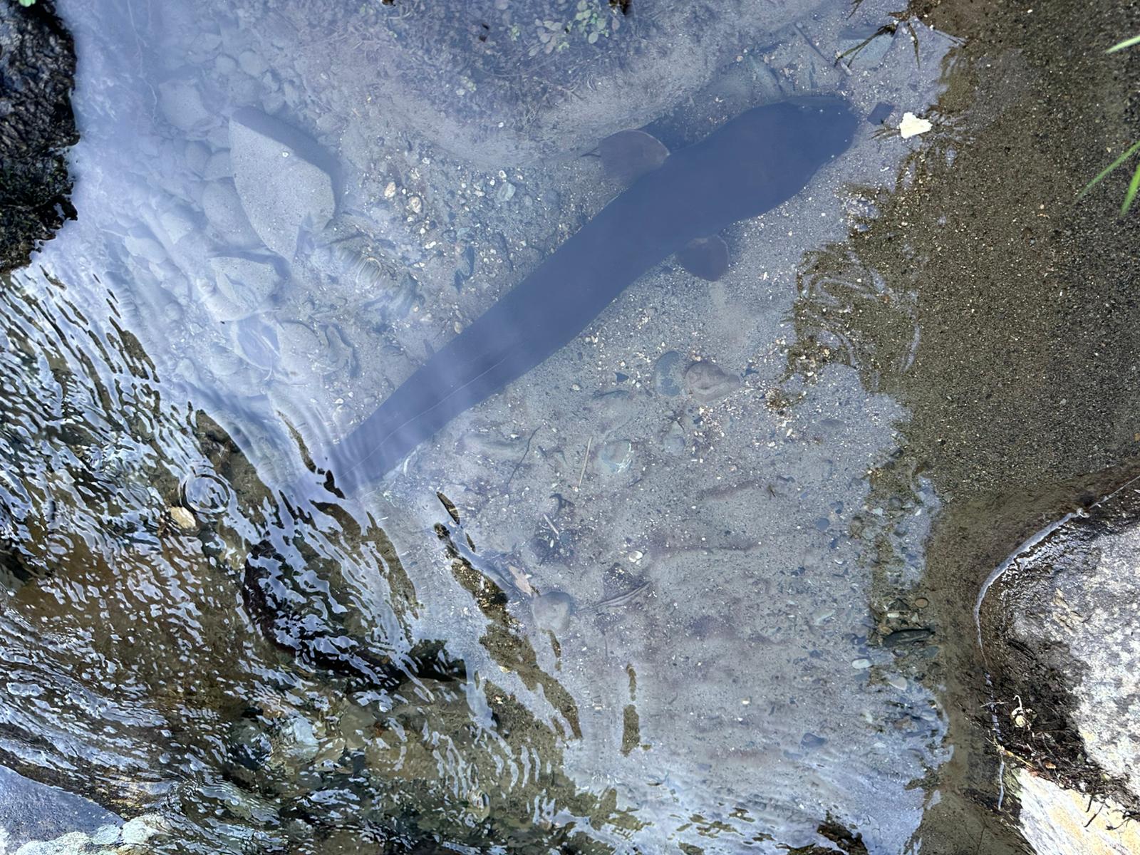 Ein kleines Stück Käse lockte einen langen Aal an. Die Tiere sind nicht gerade schön, aber ich hatte keine Angst. Er schwamm direkt auf das Käsestück im Wasser neben uns zu. Erst als ich ihn anfasste, begann er, mit seinem hinteren Körper um sich zu schlagen.