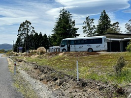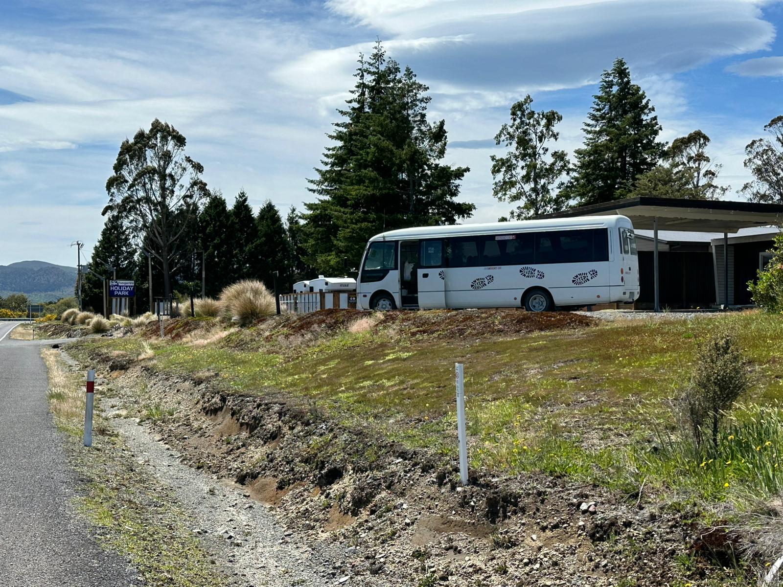 Obwohl ich ein richtiges Bett hatte, war die Nacht leider alles andere als erholsam gewesen. Mein Rucksack war schnell wieder gepackt. Nach dem Frühstück ging ich zur gegenüberliegenden Straßenseite, direkt gegenüber dem Holiday Park, wo der Shuttlebus auf uns wartete, um uns zum Startpunkt der Wanderung zu bringen. Die Vorfreude auf die bevorstehende Tour war bei allen riesengroß.