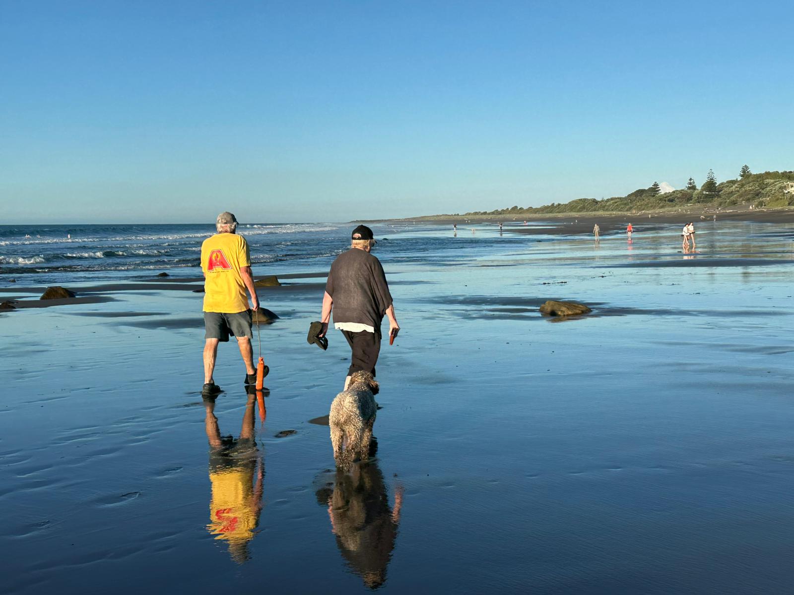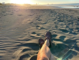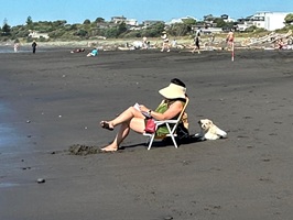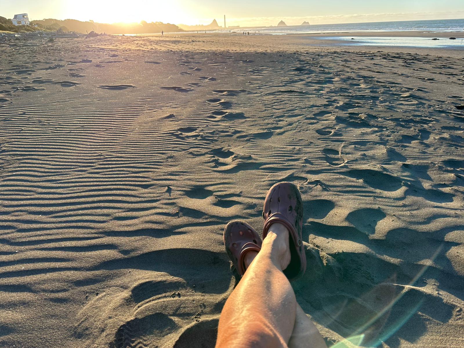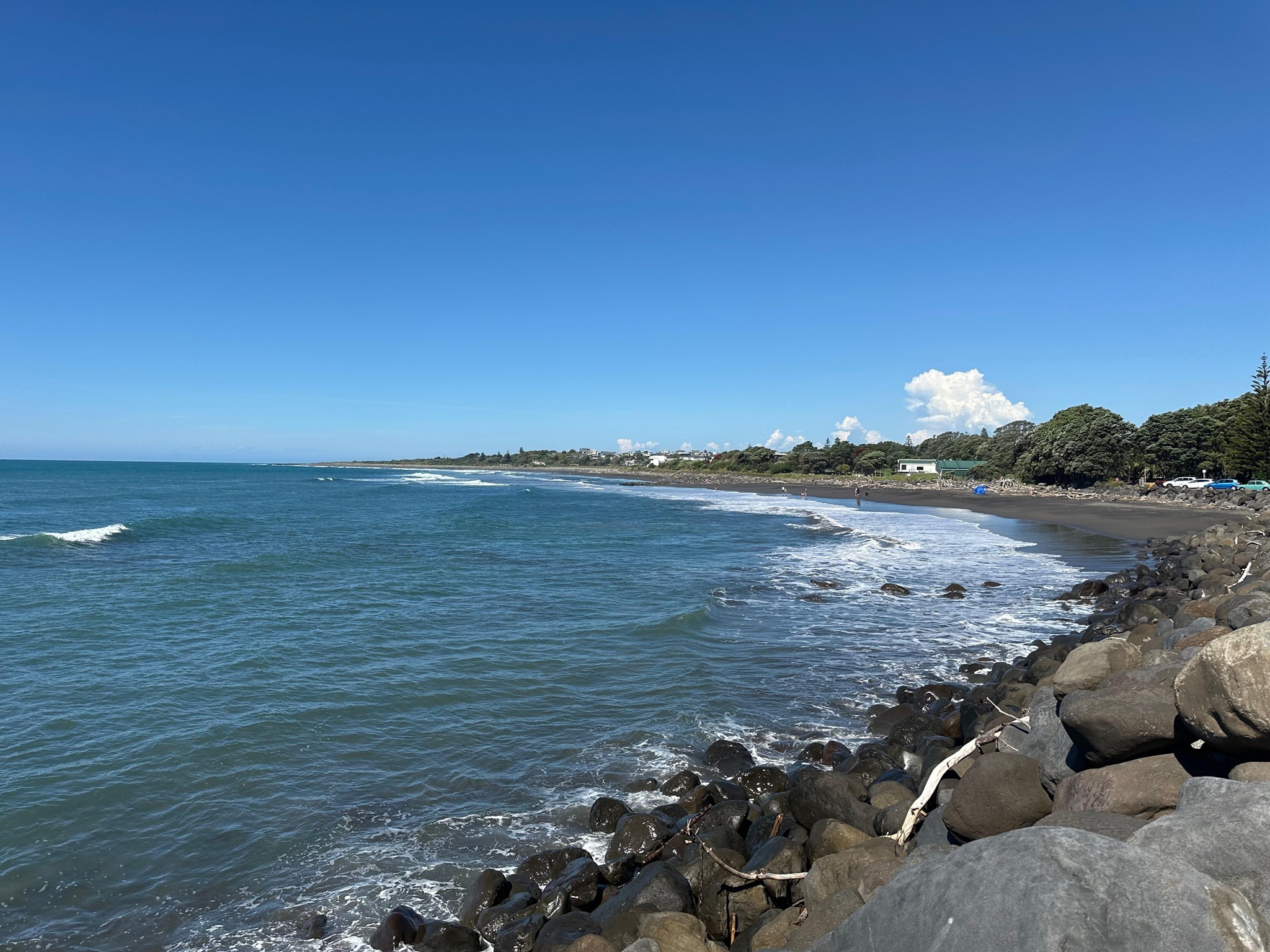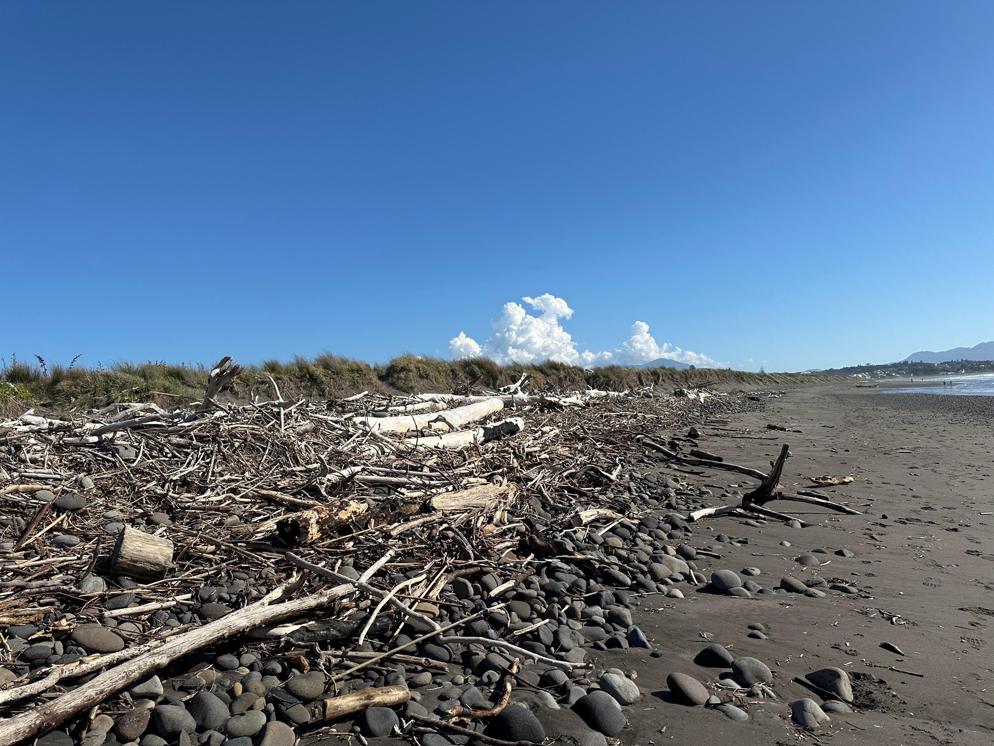 Am Strand waren viele Menschen und unheimlich viel Treibholz. Ich lief ein ganzes Stück auf dem schwarzen Sand, hatte im Supermarkt ein Mittagessen geholt und telefonierte mit meinem Freund John in Australien. Ich habe diesen ganzen Tag, ohne Rucksack auf dem Rücken und ohne wandern zu müssen, schon echt genossen.