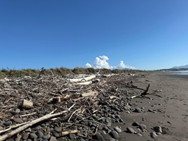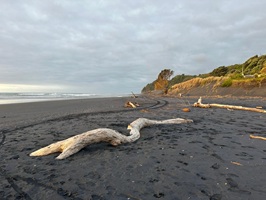 Ich lief bis ans Ende des Strandes. So viel Treibholz wie hier hatte ich noch niemals an einem Strand gesehen. Der Himmel war heute fast wolkenlos. Die Vorhersage für morgen zur Besteigung des Taranaki ist auf jeden Fall sehr gut. Morgens leichte Bewölkung, dann soll es aufklaren. Ich bin wirklich sehr gespannt auf das Taranaki Crossing. Heute Abend wird mir die Organisatorin Bescheid sagen, wann der Shuttle morgen geht und mich zum Ausgangspunkt bringt.