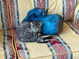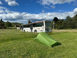 Mein Zelt stellte ich neben einem alten Bus auf der Wiese auf. Bald kam Guido – mein Kapitän im Padelboot die kommenden Tage - dazu und so schien es, als blieben wir zu zweit. Morgen wird es um 7.30 Uhr Frühstück geben und ich kann in aller Ruhe meine Planung machen und im Fluss baden. Bei den Trailhosts gibt es auch zwei Jack Russell Hunde, eine graue Tigerkatze und ein süßes Katzenbaby, das eine deutsche Wanderin namens Christine vor zwei Wochen am Straßenrand gefunden hatte. Jetzt habe ich mich noch ewig mit Guido, einem netter Kerl aus den Niederlanden, unterhalten. Doch nun freue ich mich auf einen komplett freien Tag morgen und gehe schlafen.