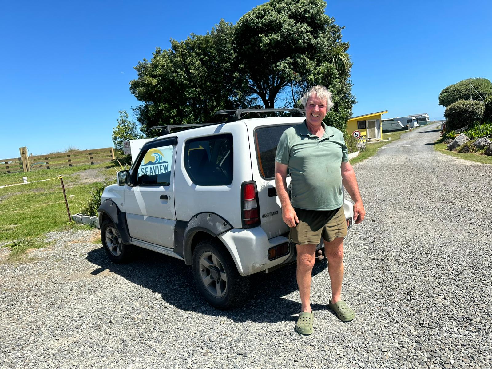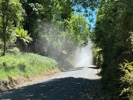 Die nächste Staubwolke kam von einem weißen Transporter, dessen Fahrer aber netterweise anhielt. Ich dachte, um den Staub zu reduzieren, doch er wollte mir nur seine Lebensgeschichte erzählen und mich ausfragen. Er war ein sehr, sehr freundlicher Neuseeländer und wollte mir alles über seine Freunde erzählen, die ich unterwegs treffen würde. Er füllte sogar mein Wasser auf.