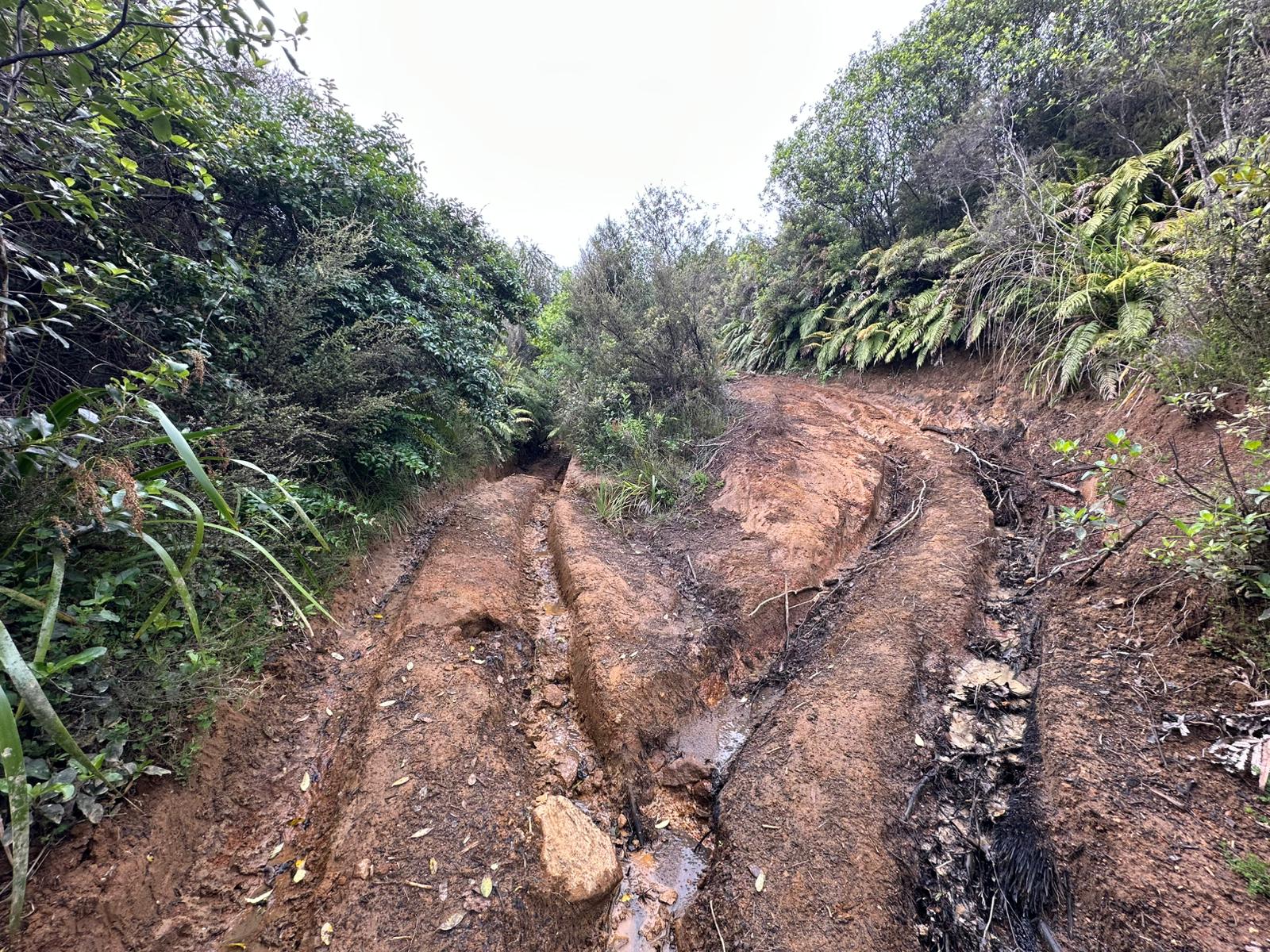 Ich schätzte, dass ich den höchsten Punkt der Strecke erreicht hatte und nur noch die letzten 11 Kilometer bergab vor mir hatte. Der Weg blieb angenehm und führte glücklicherweise durch den Wald. Seit der Touri-Info war ich wieder komplett allein unterwegs. Die 13,5 Kilometer des Tracks, für die man 5–6 Stunden brauchen soll, deuteten an, wie anspruchsvoll er ist: weicher Waldboden wechselte sich ab mit schmalen Pfaden, unzähligen Wurzeln, Steinen, Absätzen und auch sehr matschigen Passagen, was ich ja schon gewohnt bin. Ich hatte mir vorgenommen, spätestens um 18:30 Uhr im Camp anzukommen.