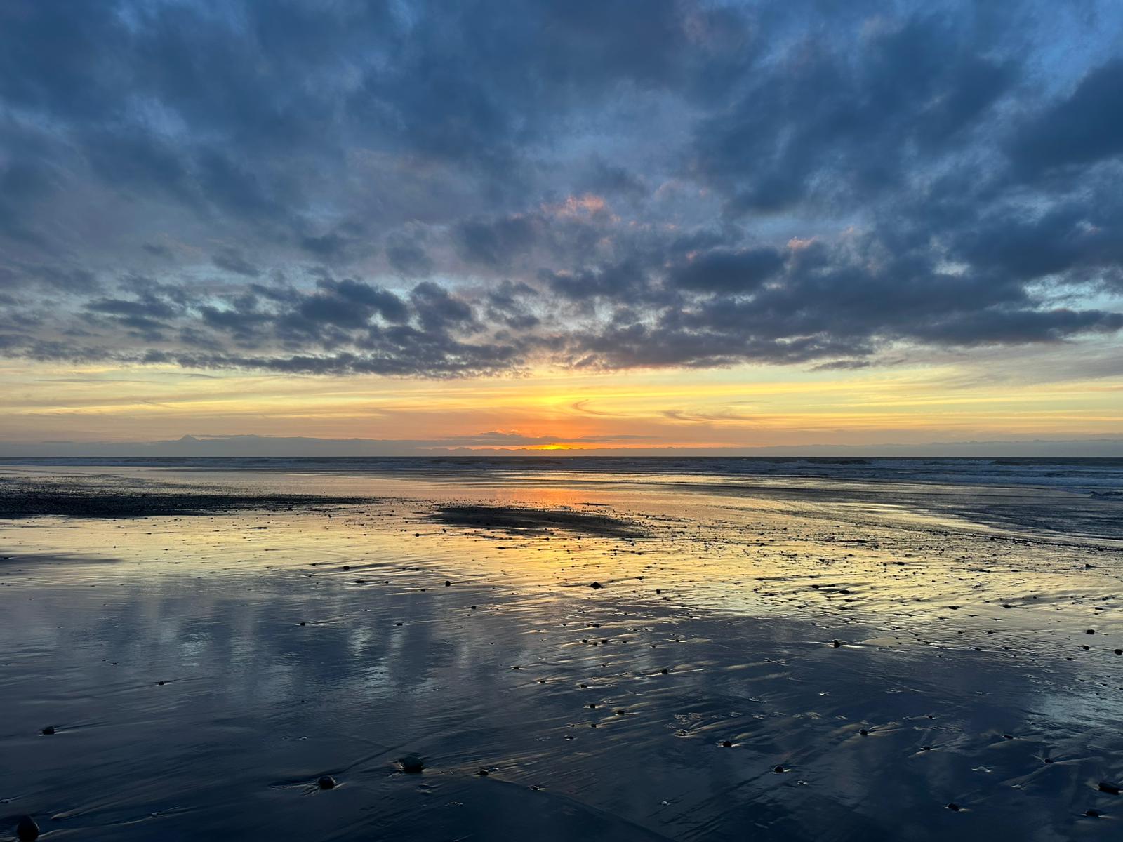 Der Sonnenuntergang schließlich war ganz gut zufrieden und ich ging zum Zelt zurück. Nach dem Zähneputzen wurde der Himmel ganz rot – also doch zu früh vom Strand weggegangen. Der Wind reißt ganz schön an meiner Behausung, aber dann ist morgen zumindest alles trocken. Das Tosen des Meeres ist richtig toll und ich werde bestimmt wie ein Stein schlafen.
