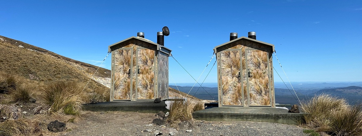 Am Morgen packte ich mein komplett trockenes Zelt zusammen, frühstückte und machte mich auf den Weg. Die ersten drei Stunden durch den Nationalpark waren ein Genuss – ich war mutterseelenallein. Alle paar Schritte musste ich anhalten und den Berg fotografieren, auch wenn die Bilder sich am Ende wohl kaum unterscheiden. Ein kleiner Abstecher zum Lower Lake lohnte sich sehr; diese Farbe des Wassers war einfach überragend. Auch eine Toilette, mitten in der Landschaft platziert, sorgte wieder einmal für einen Schmunzler. Die Neuseeländer beherrschen das.