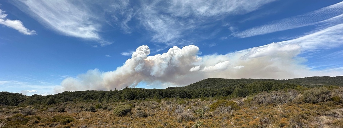 Doch dann bemerkte ich eine komische Wolke. Ich sah mich immer wieder um, beobachtete sie und fand sie (noch) nicht beunruhigend. Eine kurze Internetrecherche bestätigte meine Befürchtungen: Es gab tatsächlich einen Brand im Tongariro Nationalpark. Meine Sorge wuchs, als ich abbog und das Feuer nun parallel zu meinem Wanderweg sah, wenn auch noch in der Ferne. Panik überkam mich. Ich wusste nicht, ob der Wind drehen und das Feuer sich in meine Richtung ausbreiten würde.