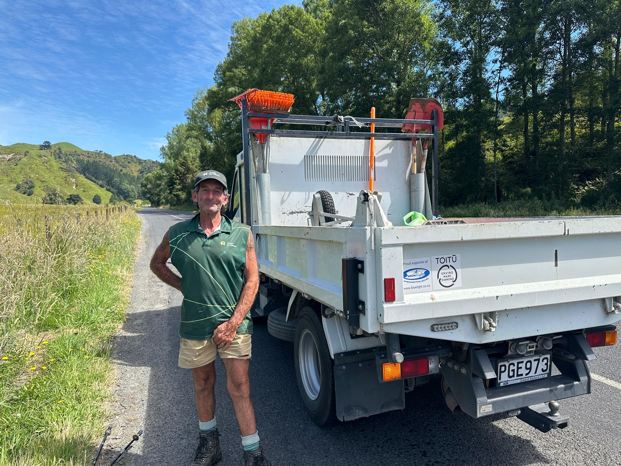 Gerade hatte ich meinen Müsliriegel aufgegessen, als Bowie anhielt – ein 130 Kilo schwerer, 37-jähriger Neuseeländer auf dem Rückweg von Auckland. Er setzte mich direkt in Waimarino ab und ich brauchte nur noch einen Lift für die letzten sieben Kilometer zur Hütte, wo mich der Polizist vor ein paar Tagen abgesetzt hatte, als ich wegen des Brandes nicht bleiben konnte.