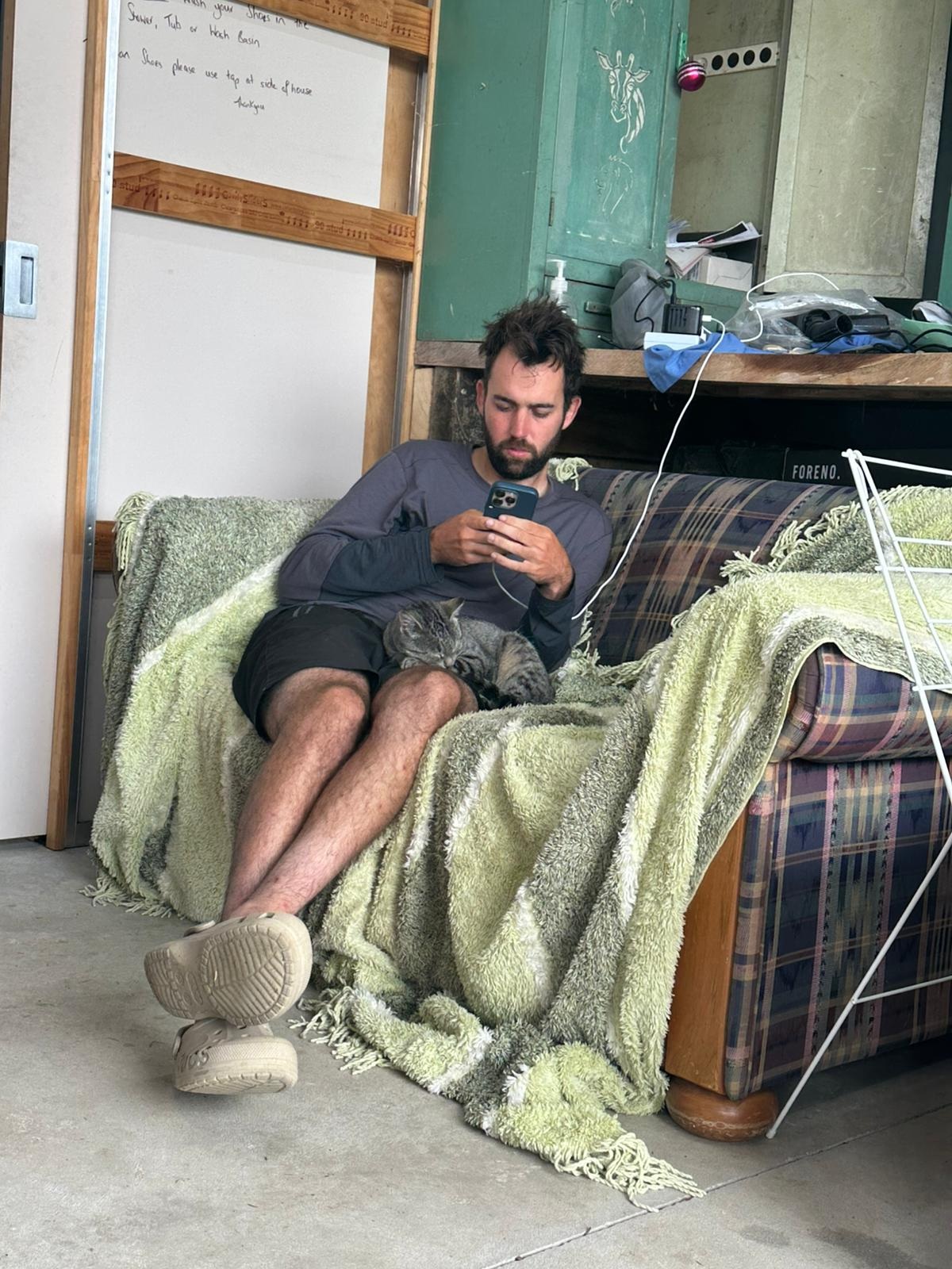 Ich verbrachte den Tag hauptsächlich mit der Planung der nächsten Camps und Hütten. Zwischendurch spielte ich mit den Katzen und Hunden, gammelte herum und tat einfach mal nichts. Irgendwann tauchte Jamie auf, den ich noch nicht kannte. Vor Kurzem waren auch Steve und Mel eingetroffen. Wir wollten uns gleich zusammensetzen, um zu besprechen, wo wir am Fluss übernachten würden.