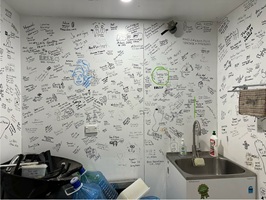 Sharon führte uns durch eine Vorstellungsrunde. Sie fragte jeden nach dem Namen, dem Herkunftsland, dem Highlight und Lowlight des Trails und, sehr charmant, was wir ihr in unserer Heimat zeigen würden. Nach dieser Runde wurden alle wichtigen Infos, die an Schranktüren geschrieben standen, vorgelesen und kommentiert. Wir bekamen ausreichend Ratschläge für alle möglichen Situationen. Zum Abschluss machten wir noch ein Gruppenfoto. Jeder durfte sich einen Apfel für den Weg nehmen, und dann waren wir offiziell "entlassen".