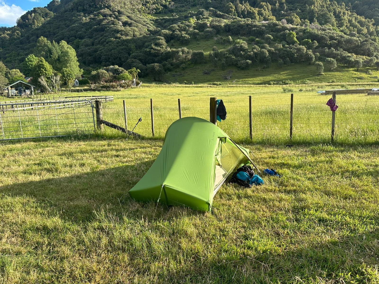 Den Rest des Nachmittags nutzte ich, um meine Sachen in der Sonne zu trocknen, wobei mir klar wurde, dass in Whanganui dringend ein Waschtag ansteht. Nach dem üblichen Prozedere aus Zeltaufbau und Kochen gesellten wir uns zu Virva aus Finnland und Jamie aus Großbritannien. Wir unterhielten uns eine Weile, doch die Müdigkeit forderte ihren Tribut. Guido zog sich schon um 18.00 Uhr zurück, ich kroch eine Stunde später ebenfalls in meinen Schlafsack. Mein rechter Handrücken ist mittlerweile angeschwollen, was mir zwar keine Schmerzen bereitet, mich aber dennoch grübeln lässt. Auch meinen Nacken spüre ich deutlich. Ich hoffe sehr, dass wir morgen die Strecke bis Whanganui in einem Rutsch schaffen und mir ein weiteres Schleppen der schweren Fässer erspart bleibt.